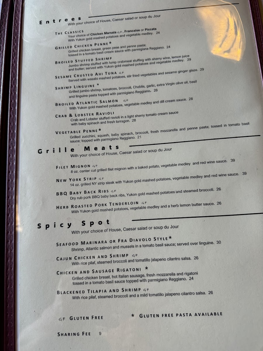 14 oz. grilled NY strip steak with Yukon gold mashed potatoes, vegetable medley and red wine sauce.
